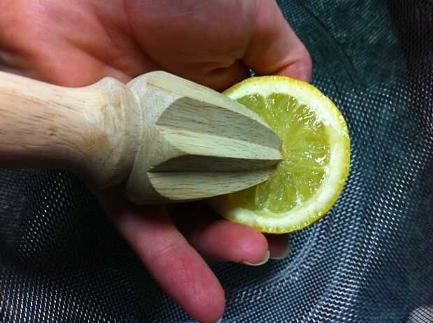 jugo de limón como puedas. Ayuda a hacer esto sobre un colador y en