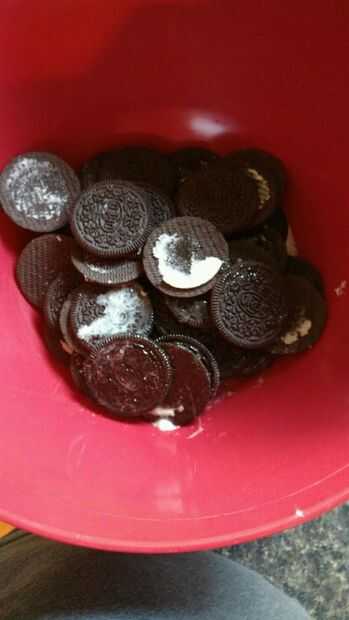 -Agregue la mantequilla derretida a las galletas Oreo.