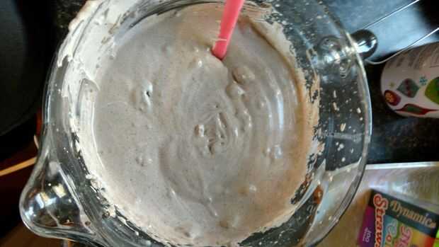 - Poner la mezcla de Oreo con leche y 2 tazas de leche en un bol y mezclar. Luego desmenuzar las Oreos restantes y deje que se unen a la fiesta. Mientras se mezcla, cuchara en todo 8 oz del azote fresco.