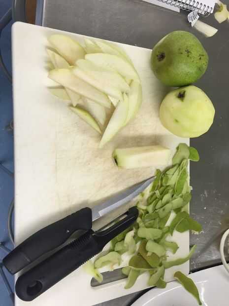5-6 peras verdes grandes, peladas y rebanadas delgadas