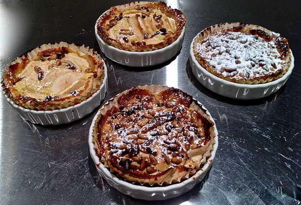 variaciones... incluyen manzana, piñones, pera, almendras y bayas...