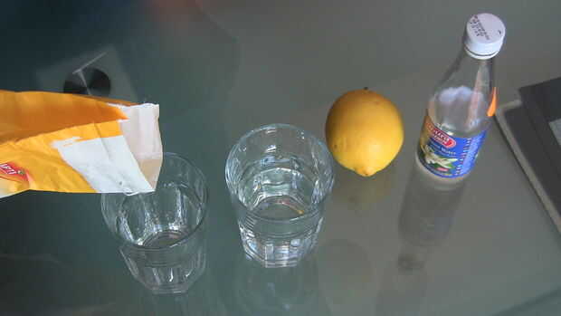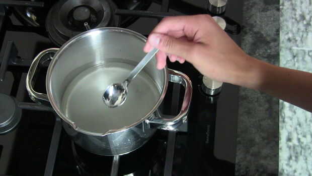Llene una olla con 1/2 de taza de agua y mezclar con 2 tazas digno de azúcar. El bote debe ser colocado en la estufa y se debe cocinar hasta que el azúcar se disuelva completamente. Este proceso tarda aproximadamente 5 minutos. Cortar el limón en dos trozos y Añadir ácido cítrico al agua de azúcar. Luego a la derecha, añadir el ingrediente secreto (pista: Azahar agua) al agua con azúcar y mezclar todo bien con una cuchara de madera, cocina.