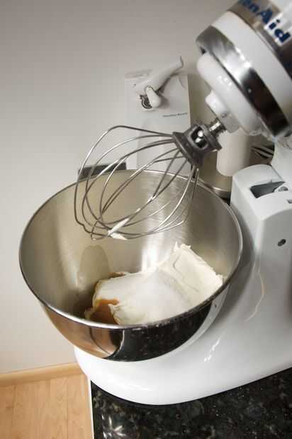 Retire el recipiente del refrigerador y verter en la mezcla. Si empieza desde el perímetro y trabajar hacia adentro, el caramelo no extendido a la superficie como mucho.