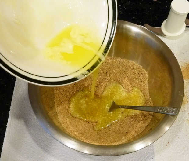 Presione la mezcla de la corteza en la parte inferior de su bandeja y enfriar.