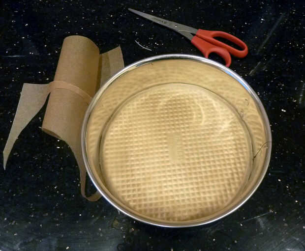 Línea de la tortera con pergamino. Esto es bastante opcional, como la cantidad de mantequilla en la corteza, es muy fácil de quitar, pero no quiero correr riesgos!