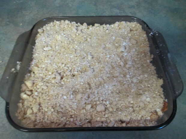 Espolvorear la última mezcla de harina encima de las manzanas. Colocar todo en el horno durante 30 minutos.