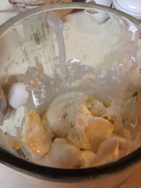 Después de sofocar el queso crema, muy delicadamente verter hacia fuera la leche la mitad en la licuadora para suavizar más la crema espesa