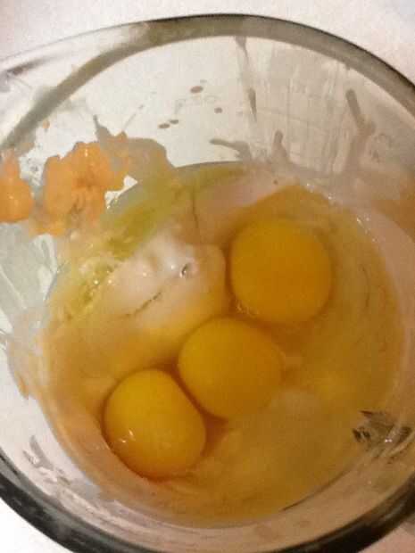 Casi al final de lo que esta bien sabrosa. Hay que añadir los huevos. Uno a uno cuidadosamente agrietar las cáscaras para asegurarse de que no hay piezas caen en la crema.