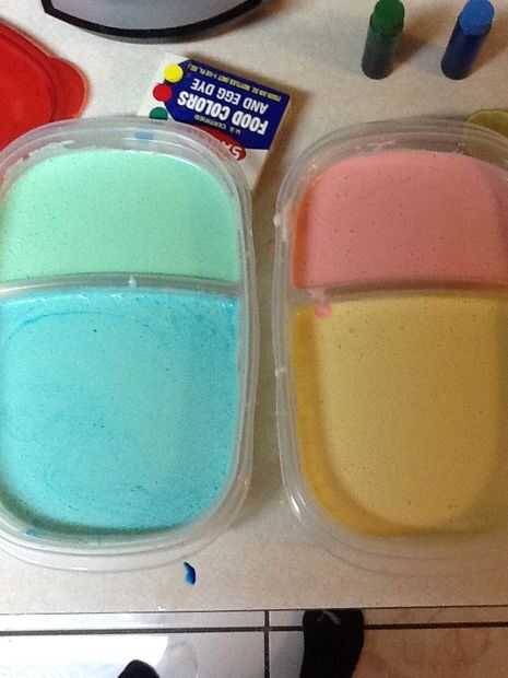 Ahora que la crema esté lista agregue el dado de colores. Agregar en cualquier color que usted quiera, púrpura, verde, naranja y así sucesivamente