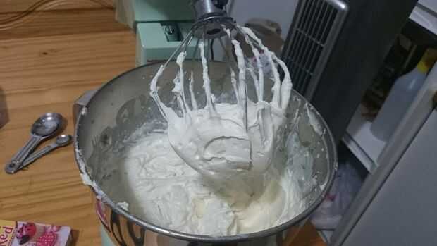 -Añadir la nata con la gelatina en la mezcla de queso y látigo hasta gruesa esponjosa y suave