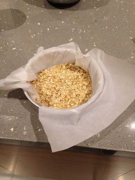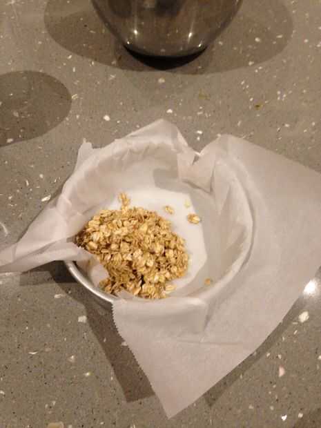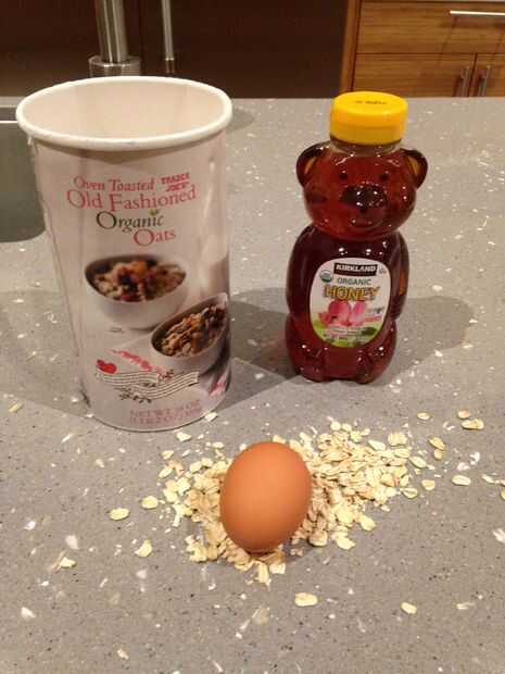 2) mezcle la miel y clara de huevo en un tazón mediano. Añadir avena y mezclar hasta combinar.