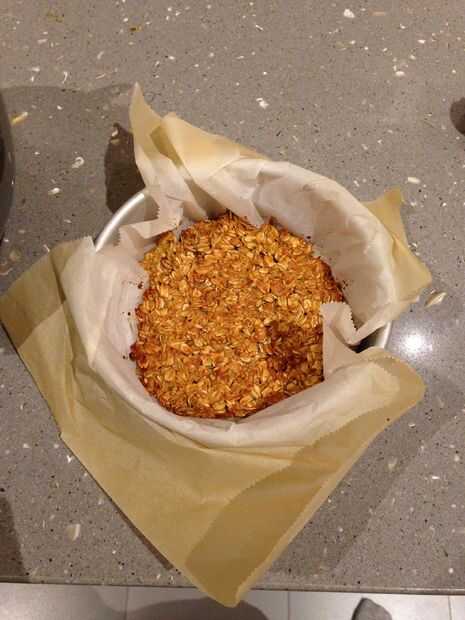 3) Presione la mezcla en el molde y hornear durante 20-25 minutos hasta que se doren.