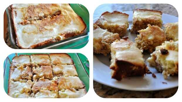 Tomar las galletas hacia fuera y dejan enfriar unos 10 minutos. Cortar en cuadrados y colocarlos en una placa para enfriar aún más.