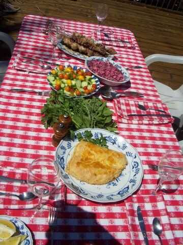 Cocinar durante 50 minutos - o hasta que se doren todos. Reúnen un montón de otros alimentos (comida preferentemente tradicional georgiano - bolas de masa hervida, por ejemplo, a la parrilla de carne, etc.) y tienen una fiesta. (Y cortar el pastel en cuadrados pequeños).