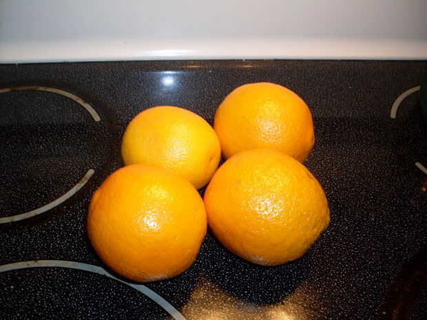 La tarta de queso se remata con 6 rodajas de naranja caramelizadas. Todo lo que necesitas para esto es 6 rodajas finas de naranja, 1/8 a 1/4 de pulgada de espesor, todos aproximadamente del mismo tamaño (sólo necesitas una naranja para hacerlo), y el azúcar. Con las rodajas de naranja, asegúrese de que mantener la corteza en ellos. Esto se suma al sabor.
