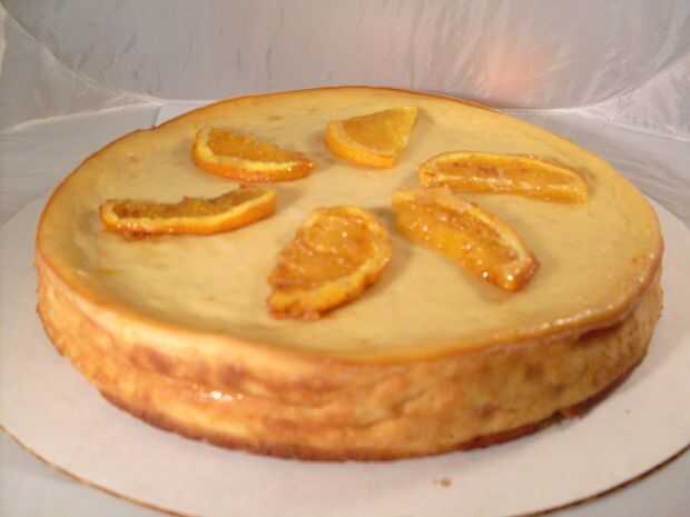 Arreglar las rodajas en la parte superior del pastel, en la clase de un patrón de molinete, como se puede ver en la foto. Superior con una polvoreda ligera de azúcar glas, y listo! Disfruta de este pastel de queso ligero, sabroso.
