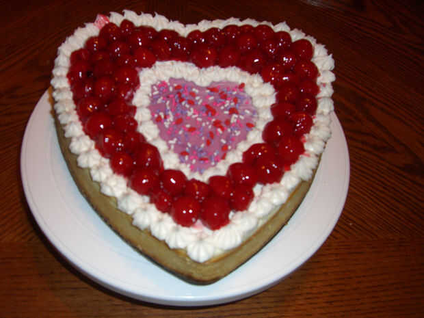 Use una cuchara para rellenar el área entre el corazón de centro y borde externo con cerezas. Moverse suavemente cerezas en tantas como sea posible.