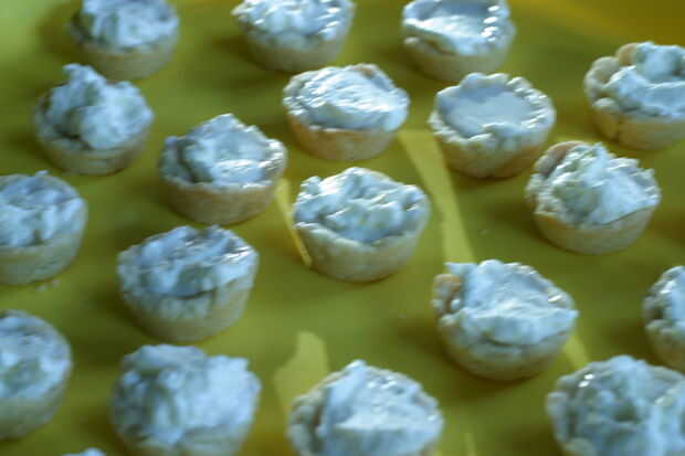 Cuchara el relleno en cada Tartaleta. Poner fruta fresca en cada tarta. Luego mezclar el jugo de limón y miel en un tazón pequeño. Rocíe la mezcla en cada tarta y espolvorear con cabezas de limón triturado. Decorar con hojas de menta dulce.