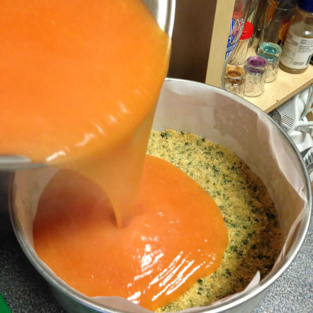 Quitar la corteza del congelador. Vierta el relleno sobre la corteza. Ponga en el refrigerador para establecer, al menos 4 horas, pero preferiblemente durante la noche.