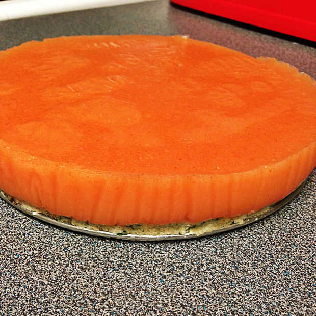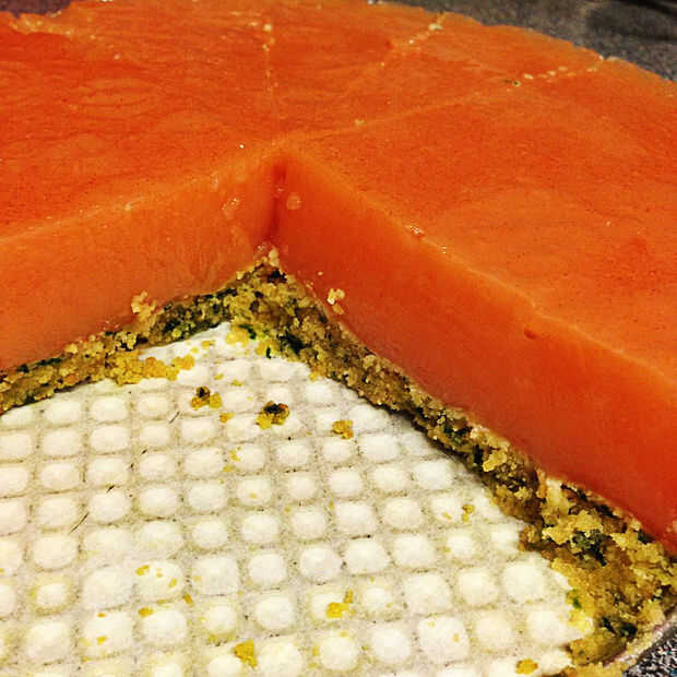 Una vez la tarta, retirar los lados de la springform y tomar suavemente el pergamino de los lados del pastel. Transferir a un plato de servir, mantener el pergamino de fondo o dejar en el fondo de la asadera. Cortar en 12 trozos.