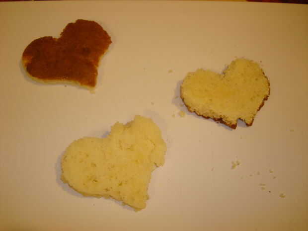 Nota: Al horno mi pastel un poco demasiado largo así que tuve que recortar los bordes, así que cuando usted hornea el pastel Asegúrese de que no forma una corteza en cualquier lugar o va a ser difícil recortar las formas.