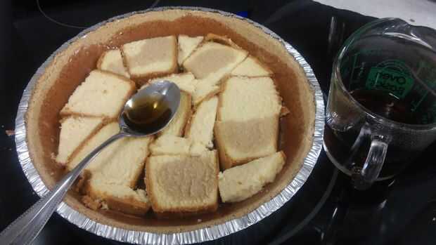 Cuchara de 1/4 taza de café sobre la torta de la libra.