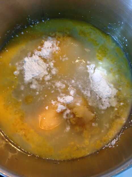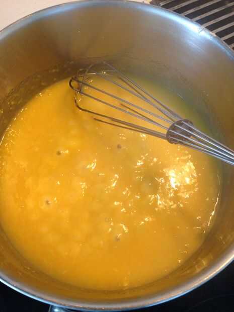 Combinar las yemas de huevo ligeramente batido, 1/2 taza de azúcar, almidón de maíz, cáscara de limón, jugo de limón, sal y agua. Cocine hirviendo agua 15 minutos, revolviendo constantemente hasta que espese.