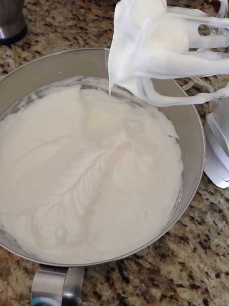 Beat restante 1/2 taza de azúcar en las claras de huevo batidas.