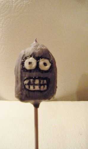 Después de usar el blanco se funde para hacer ojos y boca de Bender, agarré mi cepillo de pintura segura de alimentos y cepillado en el detalle negro de su boca y los ojos. Recuerde que sus alumnos son cuadrados, no redondos como los otros!