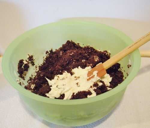 Romper el pastel en trozos y desmenuzar hasta que se asemeja a las migas de pan.