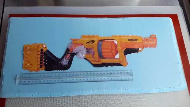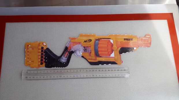 * Dependiendo de la cantidad de porciones, haz una impresión de tu modelo de pistola de nerf a la escala deseada.