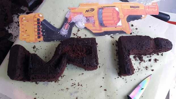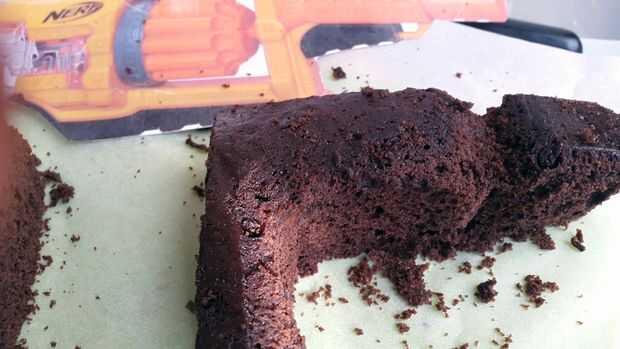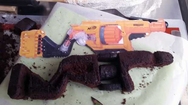 * Después de cortar la torta en forma de pistola, no tire a la basura o comer todas las piezas de chatarra, vamos a utilizarlos más tarde ;D