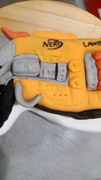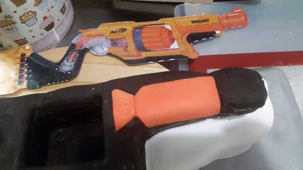ahora si usted quiere hacer su pistola nerf humo después de su sido tiro toma un recipiente Tupperware un relleno se llena aproximadamente una quinta parte de talco y rodillo su bala de pistola de nerf en el polvo luego rodarla como normalmente haría