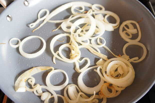 Cebolla caramelizada es uno de los ingredientes mejor pizza, especialmente cuando se combina con salchicha. Agregan el nivel perfecto de dulzura. Pelar y cortar la cebolla en aros. Coloque 1 cucharada de aceite en una sartén antiadherente. Cocinar las cebollas a fuego medio-bajo durante 12-15 minutos, revolviendo ocasionalmente. Cuando las cebollas estén blandos y ligeramente dorados, están listos. Tenga cuidado de no cocinar las cebollas a fuego alto o puede quemar.