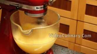 Transferir la mezcla de huevo en el recipiente de una batidora y látigo en alta velocidad hasta que se enfríe, liviana y esponjosa.