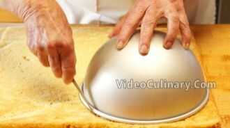 Montar el pastel en un 22 cm (8,5 pulgadas) en diámetro medio esfera torta del molde. Coloque el molde sobre la esponja y cortar un círculo. A un lado - se trata de la base de la torta.