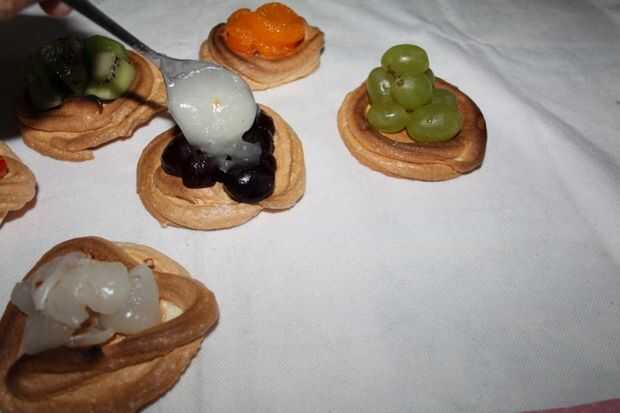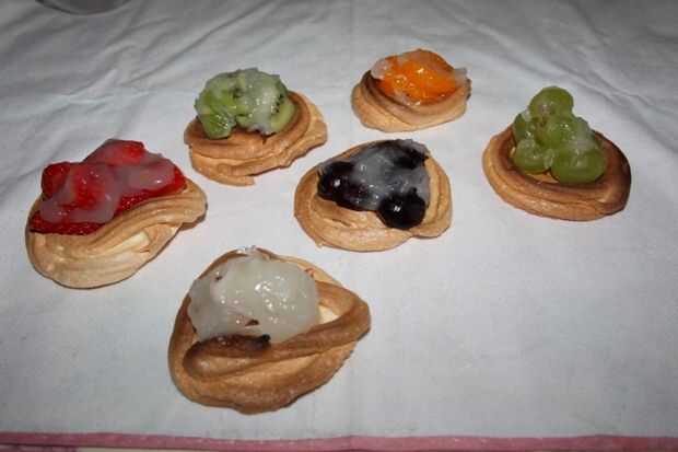 Hacer el glaseado con el zumo de fruta y arrurruz. Si el jugo no es suficiente arriba para arriba con agua. Raíz de flecha mezcla 2 té cuchara con un poco de líquido, luego agregue el resto del líquido. Hervir y cocer a fuego lento 1/2-1 minuto hasta que se clear.when se ha enfriado alittle cubrir las frutas con un pincel de repostería.