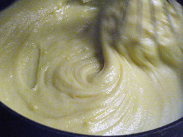 Transferir la mezcla a la cacerola y colocar sobre fuego medio-alto. Bate constantemente y tomar la crema fuera del fuego una vez que comienza a llegar al espesor deseado (no hacer esto; mi crema pastelera era demasiado fino, pero subsanar el error, como se ve más adelante en este paso).