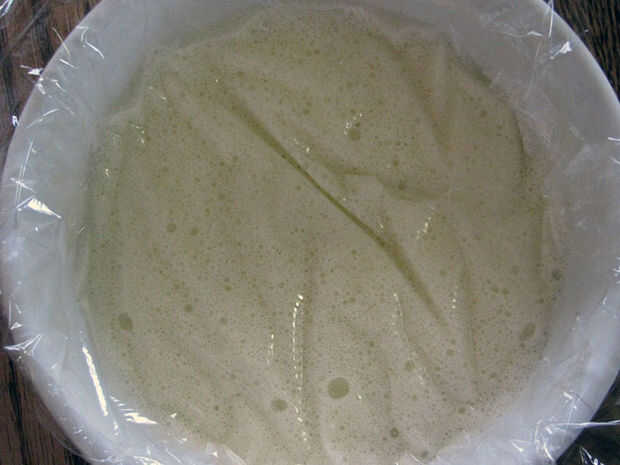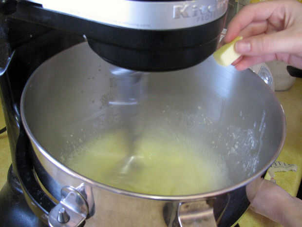 Si tienes una batidora con el accesorio pala, vierta la crema en su tazón de fuente y el mezclador en medio hasta que la crema se enfría (unos 5 minutos). Si no tienes esto, no del mismo modo con una batidora de mano o haz un serio entrenamiento de brazo con el bate. Coloque la envoltura de plástico encima de la crema para evitar el desarrollo de una capa y refrigera por 2 horas (uso dentro de un par de días).