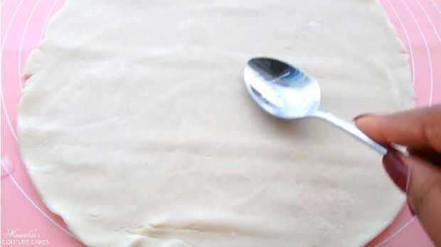 Usé una lista para uso en masa que se puede encontrar en la sección del refrigerador de la mayoría de los mercados. Todo lo que tienes que hacer para esto es desenrollar la masa y aplique una capa delgada de agua sobre todo. El relleno de esta receta será suficiente para 2 conchas de pastel, pero decidí usar 1 que hace tartas de mano 7.