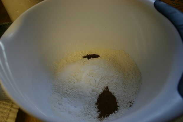 En otro recipiente combinar la harina, bicarbonato, sal, canela y clavo