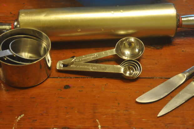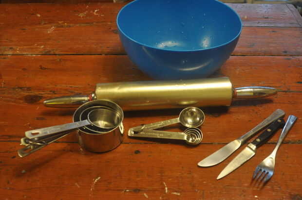 Si alguna vez han horneado un pastel antes de, o al horno algo, Sabe usted realmente no necesita mucho. Para este proyecto usé: dos medianas grandes tazones de fuente, un tazón pequeño, medición de tazas, maesuring cucharas de té y mesa, un tenedor, un cuchillo de mantequilla, un cuchillo, una cuchara, galletas, papel de cera, perno de balanceo, y eso es todo!