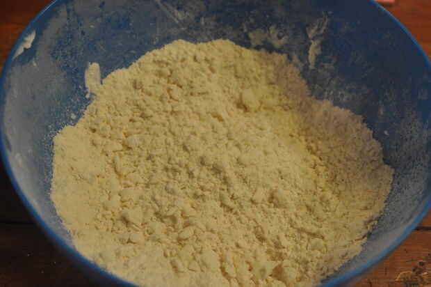 El primer paso es hacer la masa para las tartas de tarta. Empezar por la combinación de dos y un cuarto de tazas de harina y tres cuartos de cucharadita de sal. Luego agregar dos tercios de una taza de manteca. Una manera fácil de combinar la manteca con la mezcla de harina-sal es tomar el cuchillo de la mantequilla y corta en el acortamiento en el tazón de fuente. Mantener el recipiente en un ángulo y continuar cortar la manteca en trozos del tamaño de guisante. A continuación, agregar una o dos cucharadas de agua fría a la vez a la mezcla. Entre cada cucharada, revolver la mezcla hasta obtener una masa que permanece juntos cuando pack, pero no es extremadamente goey.