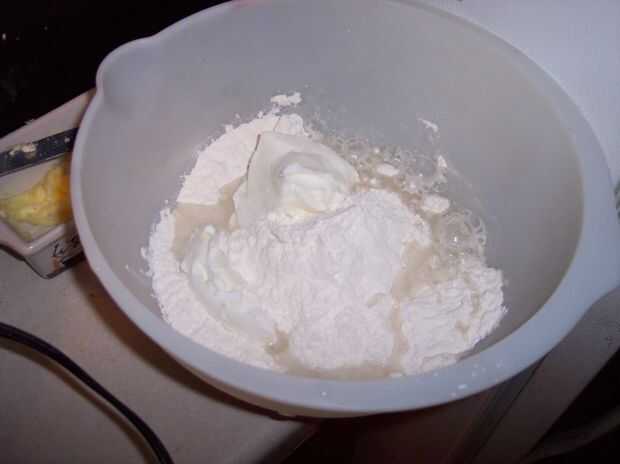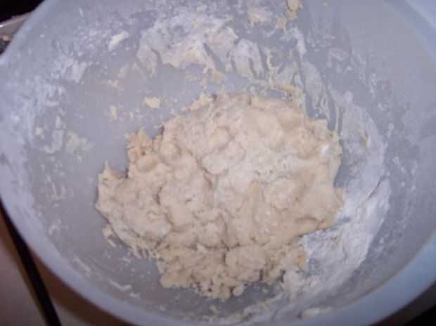 En una tazón grande mezcla; harina, manteca, sal y agua hasta que la masa sea suave y no pegajosa.