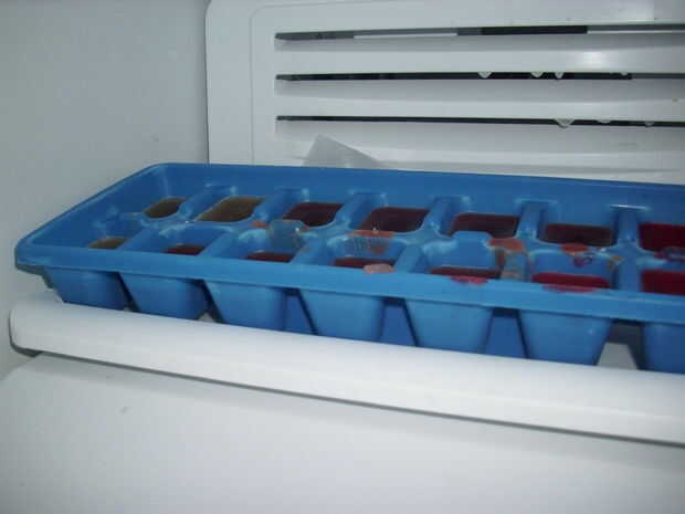 Deje que la cera set durante unos 15 minutos en el mostrador.  De esa manera la cera no salpica hacia fuera al mover la bandeja.  Transferencia de la bandeja del cubo de cera semi-situado en el congelador para endurecer.  La cera necesita unos 20 minutos a enfriar en el congelador.
