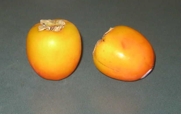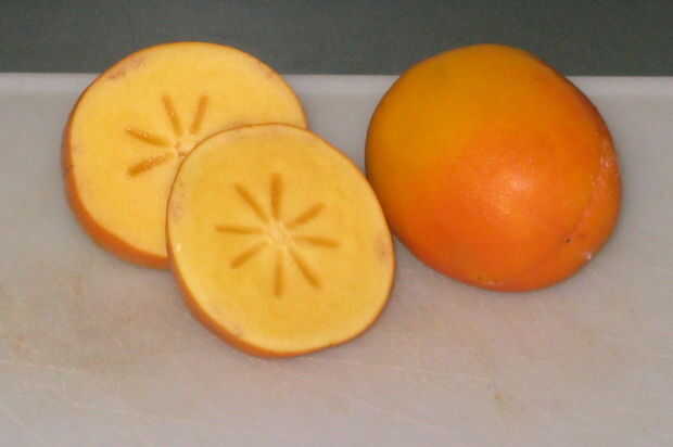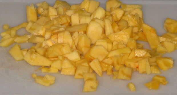 Pelar y cortar en cuadritos la pulpa del caqui maduro.