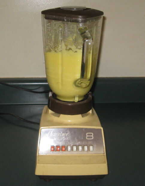 Poner el caqui en cubitos en la licuadora con el resto de los ingredientes y puré hasta que quede completamente lisa.