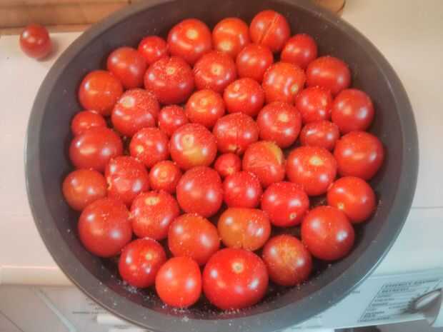 Seleccionar los tomates que desee y meter en la bandeja para hornear que han engrasado con el aceite de oliva. Los tomates quieren embalado en realmente bien y quieres darles un poco de un squish para que algunos de ellos fractura abiertas sólo muy ligeramente. Sazonar con un poco de sal y pimienta.