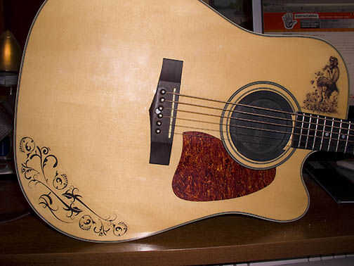 Esto es genial porque puedes 'decorar' la guitarra sin dañar el acabado. Podrás cambiar tu tatuaje de guitarra cuando quieras. Puede golpear su nombre sobre su guitarra. ¿Qué tal una foto de su otro significativo? Mostrar el nombre de tu banda. Mostrar el nombre de su pájaro. Lo que sea. ¡ Disfrute!
