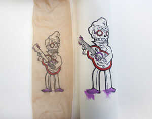 Permite sus pinturas para tela secar (se puede ver no espere lo suficiente!) y luego retire con cuidado sus medias del tubo.